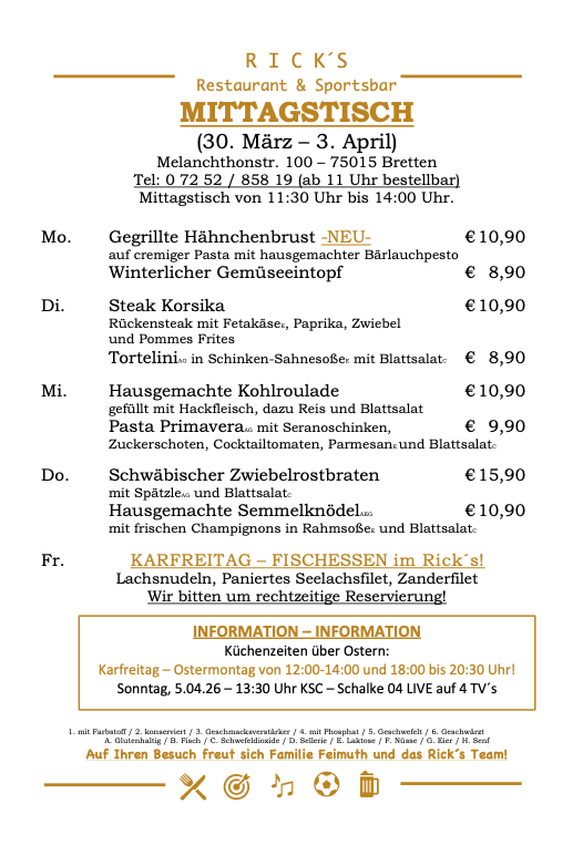 Sonn- und Feiertag: 12:00 - 14:00 Uhr